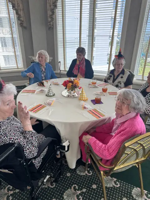 The Trick or Treat Tea Party Lunch at the Lourdes Noreen McKeen Residence for the elderly. We served 80 residents and I went as a teapot!